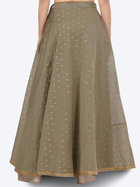Grey embellished flared maxi skirt have mid rise waist band with drawstring closure & flared hem.
