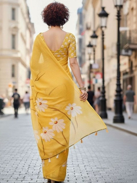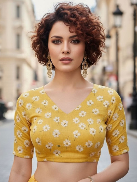 The blouse worn by the model might be for modelling purpose only. Check the image of the blouse piece to understand how the actual blouse piece looks like.