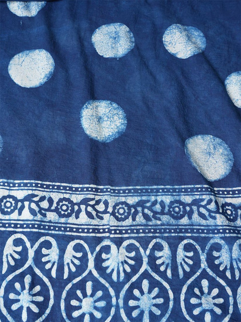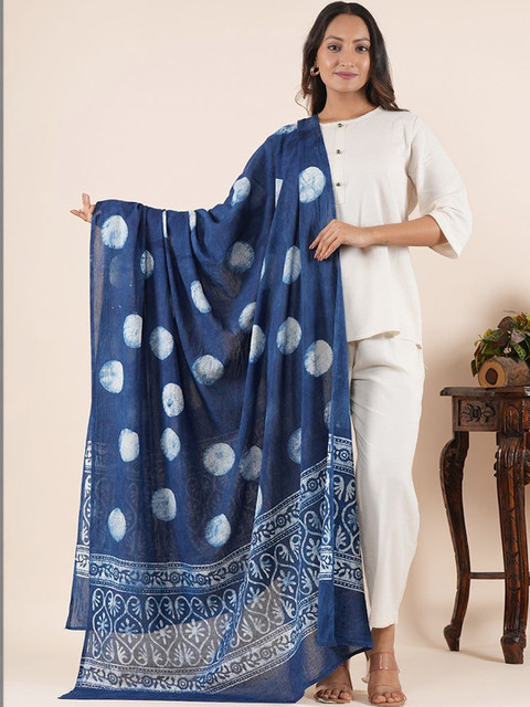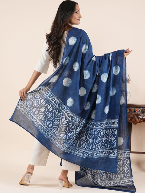 Blue and white ethnic motifs printed dupatta has block print technique,, printed border