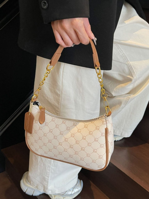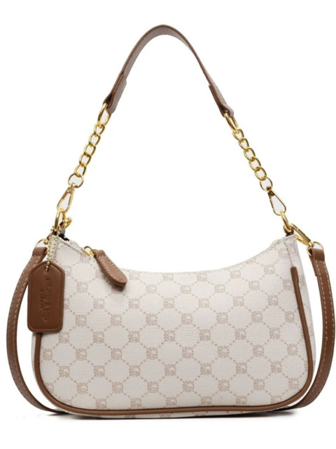 White abstract printed sling bag 1 main compartment, has a zip closure, na external pockets, na inner pockets