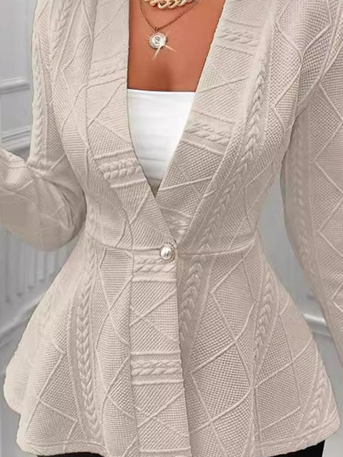 Cream solid slim-fit smart-casual blazer, has a notched lapel, long sleeves, single-breasted with Structured shoulder surface detailing, button closure