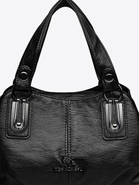 Black solid sling bag 1 main compartment, has a zip closure, na external pockets, 1 inner pockets