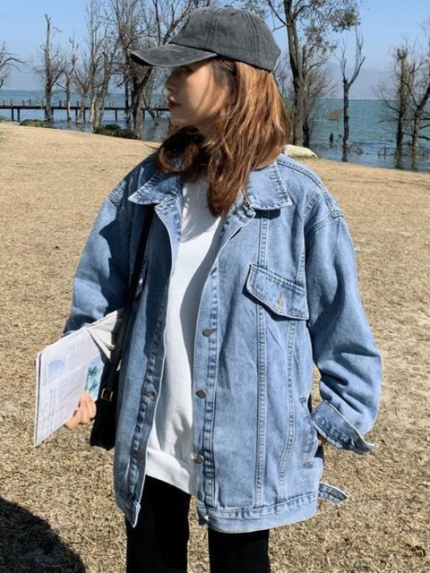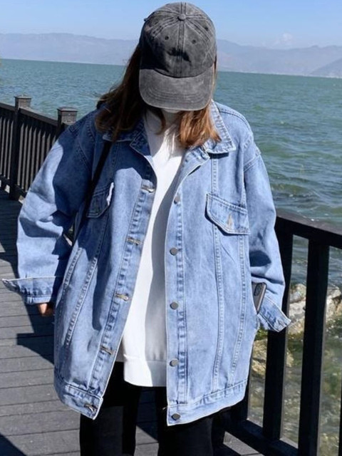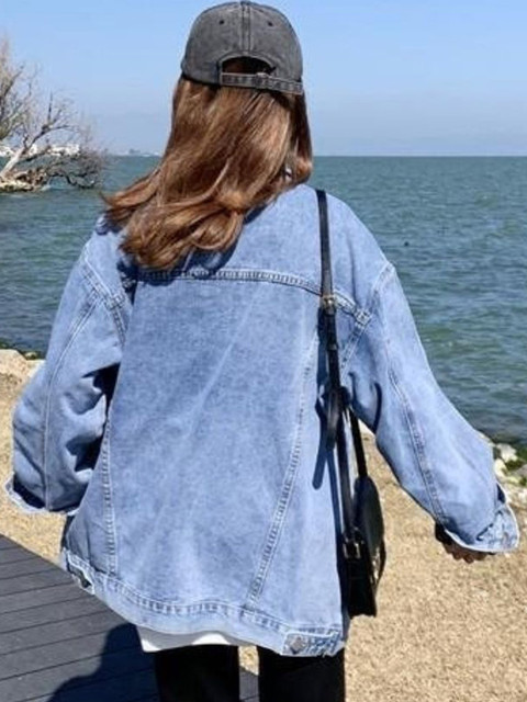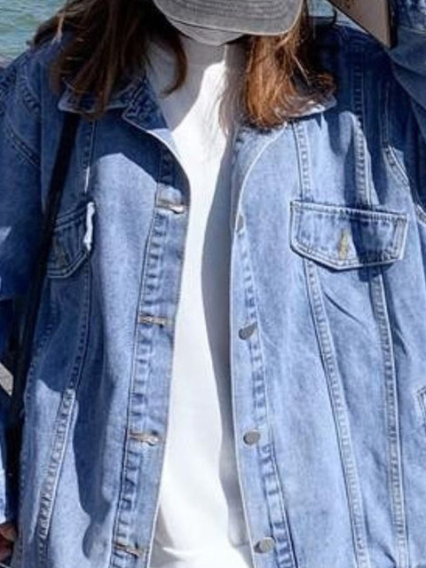 Blue solid denim jacket, has a spread collar, 2 pockets ,has a button closure, long sleeves, straight hemline, without lining