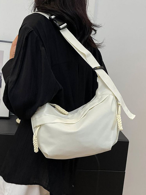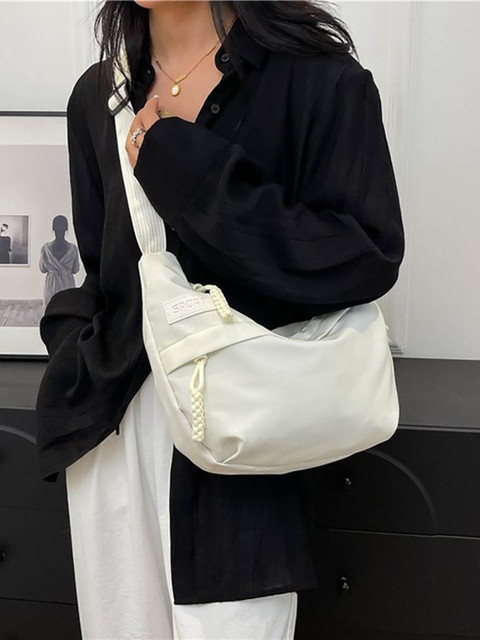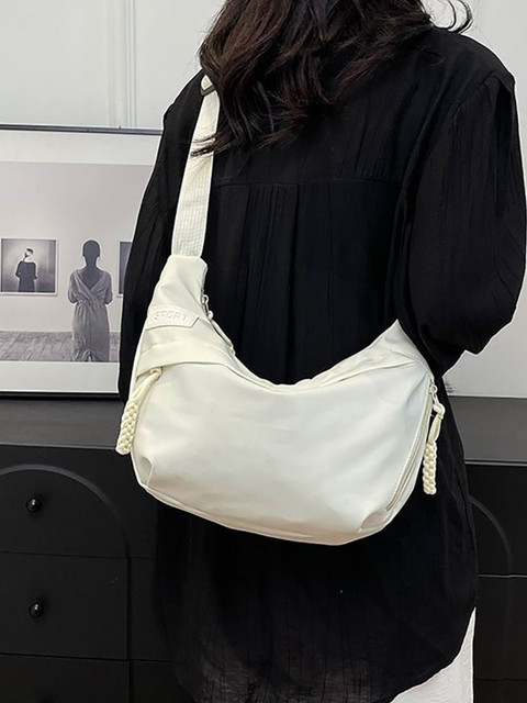 The white half moon sling bag is a stylish accessory that combines elegance and functionality. Made from PU leather or synthetic leather, it’s designed to be durable and long-lasting. The bag features a single compartment with a zipper closure and a non-detachable strap. Its compact size makes it perfect for daily use, and the material is easy to clean .