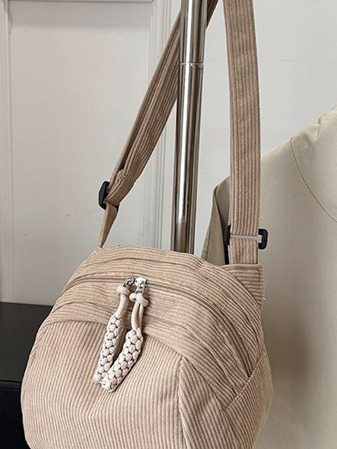 Khaki solid sling bag 1 main compartment, has a zip closure, na external pockets, 1 inner pockets
