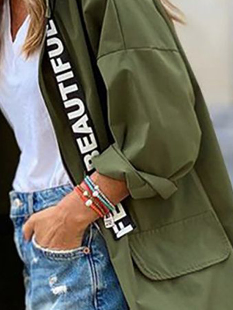 Green solid single-breasted overcoat, has mock collar, long sleeves, button closure, two pockets, a straight hem