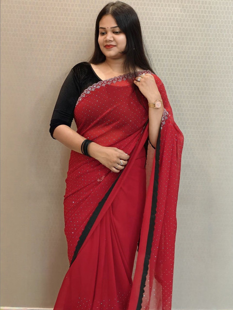 The blouse worn by the model might be for modelling purpose only. Check the image of the blouse piece to understand how the actual blouse piece looks like.