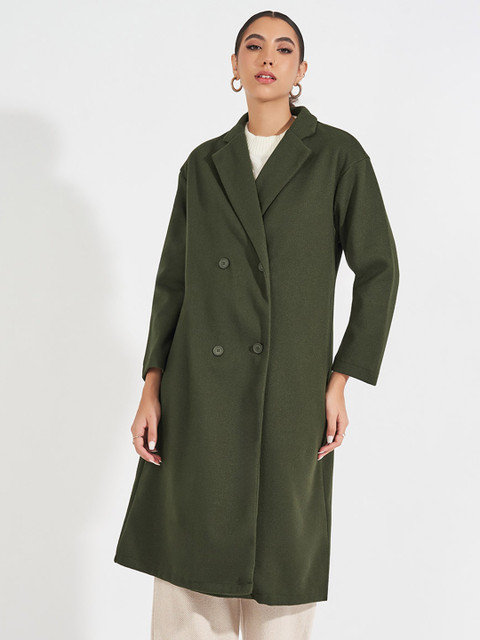 Styli Women Knee Length Double Breasted Longline Overcoat