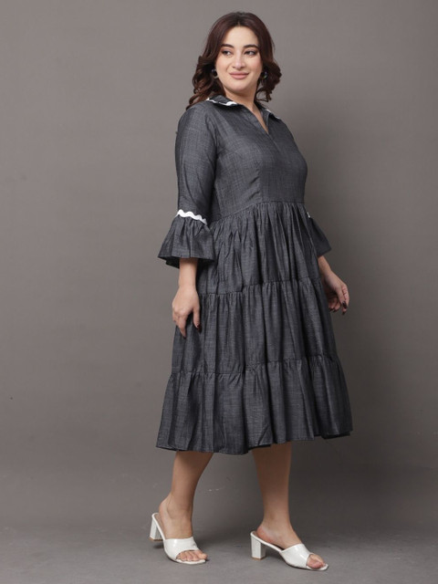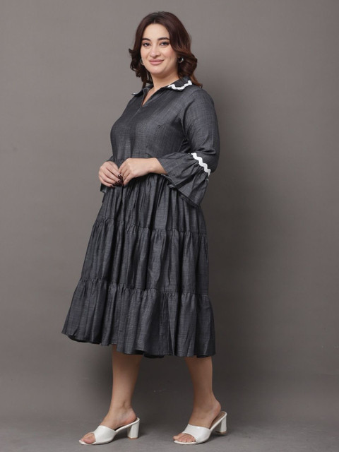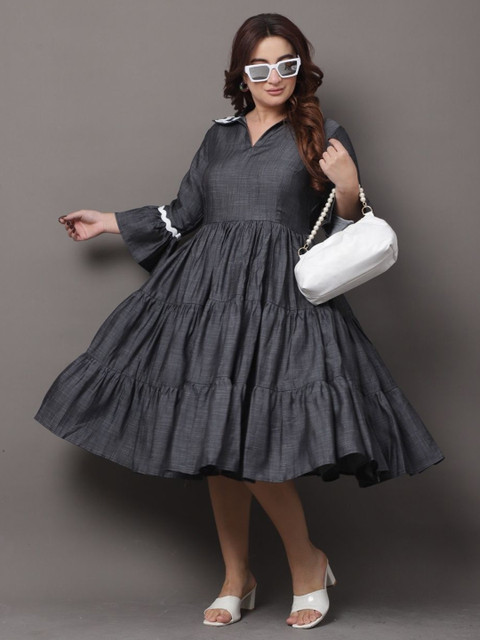 - Grey solid fit & flare dress