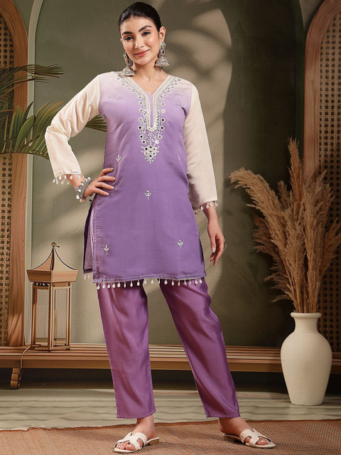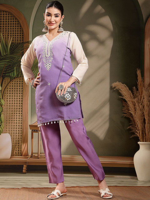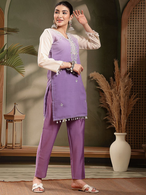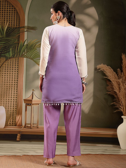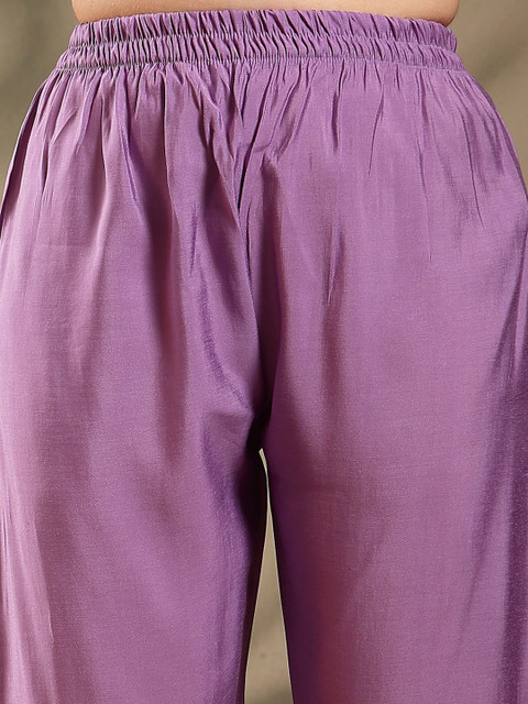 Purple solid trousers, has an elasticated waistband with slip-on closure