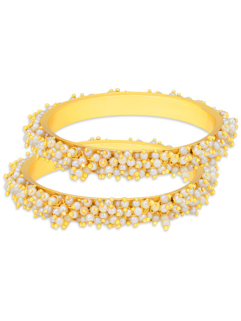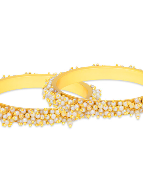 Set of 2 gold-plated and white pearls-studded antique bangles