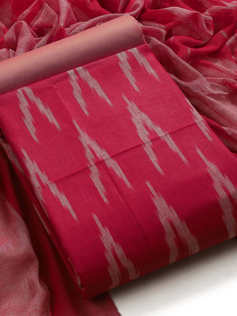 Pink woven design unstitched dress material