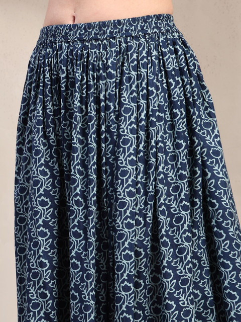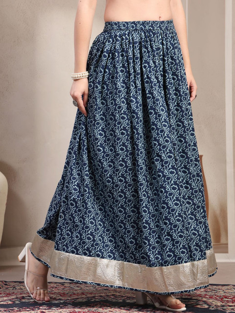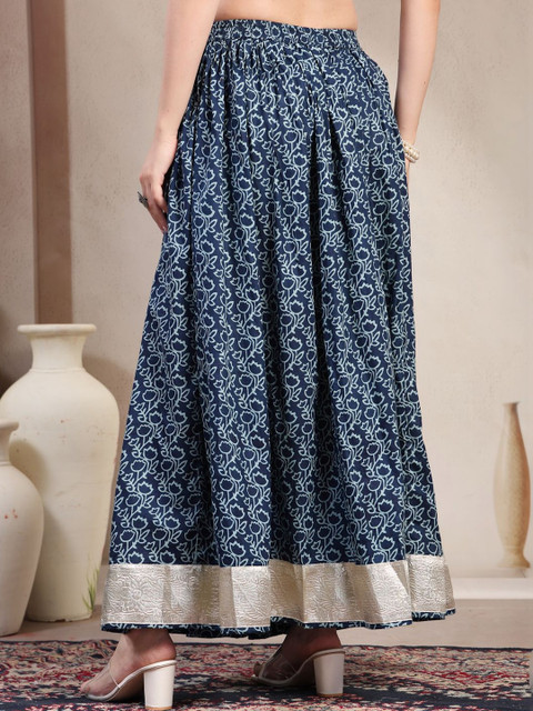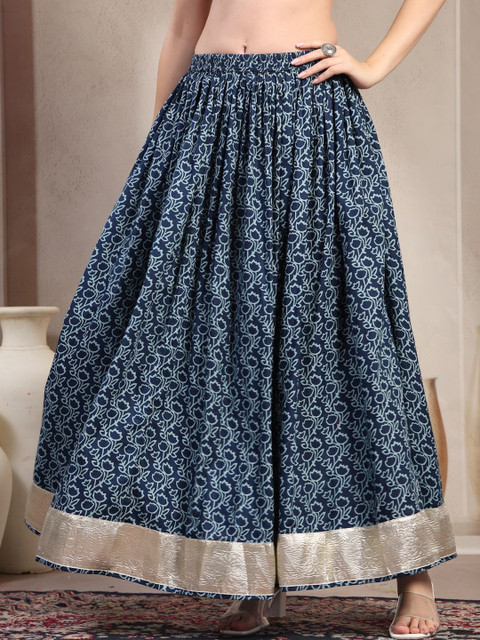 SUNEKH Self Design Cotton Maxi Flared Skirt