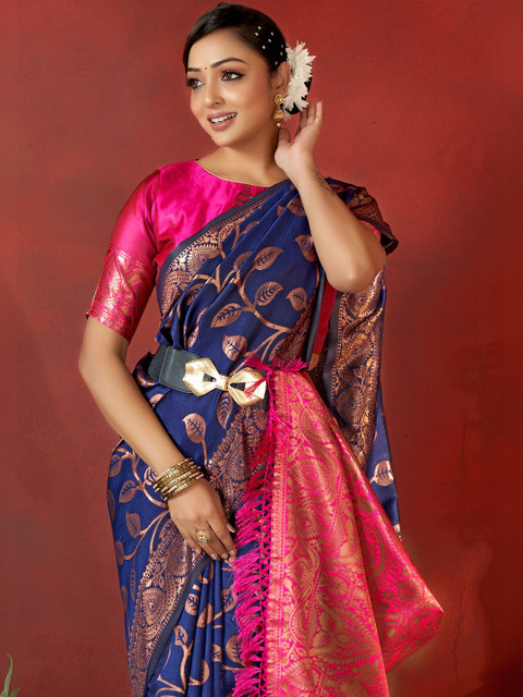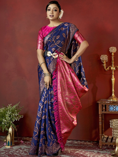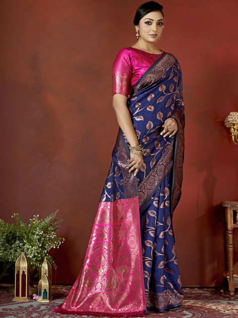 - Navy blue banarasi saree