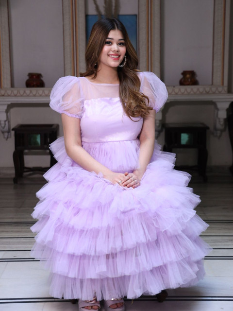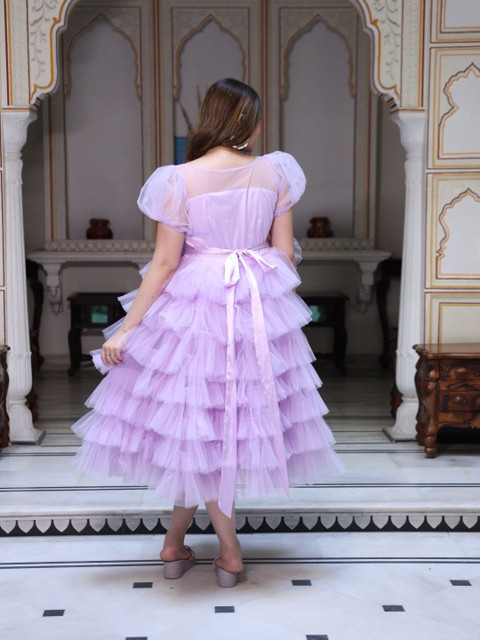 Be the first to review “Swadeshi Shringaar Plus Size Boat Neck Puff Sleeves Net Layered Fit & Flare Midi Dress”