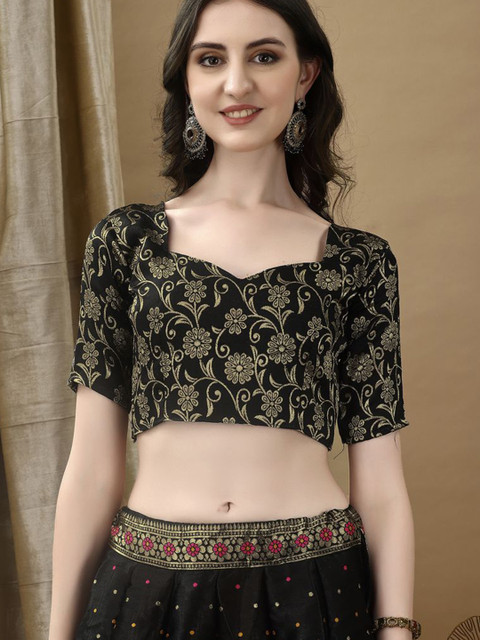 SWAMI STUDIO Floral Woven Design Zari Ready to Wear Lehenga Unctitched Blouse & Dupatta