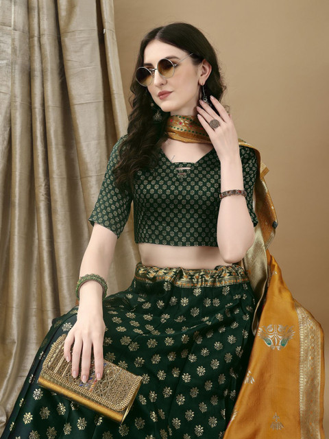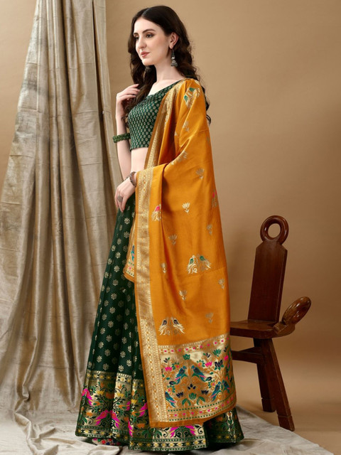 Green and mustard woven design lehenga choli with dupatta, zari
