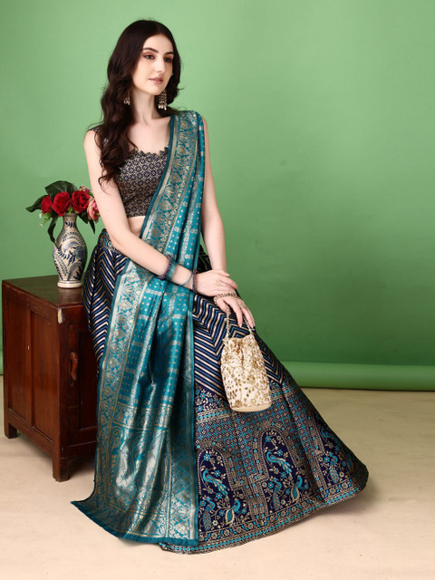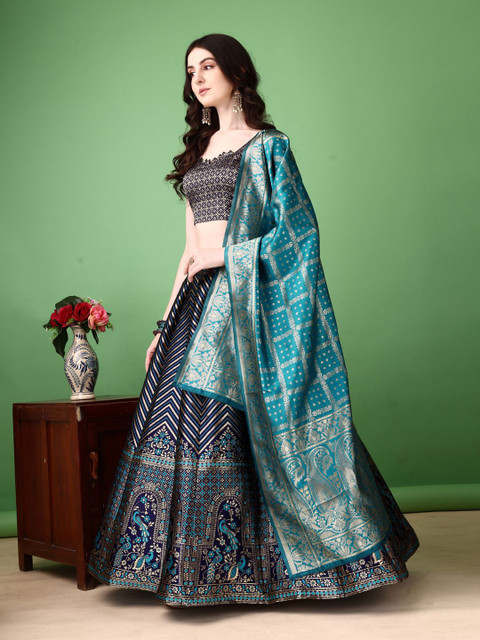 Blue and silver-toned woven design lehenga choli with dupatta, zari