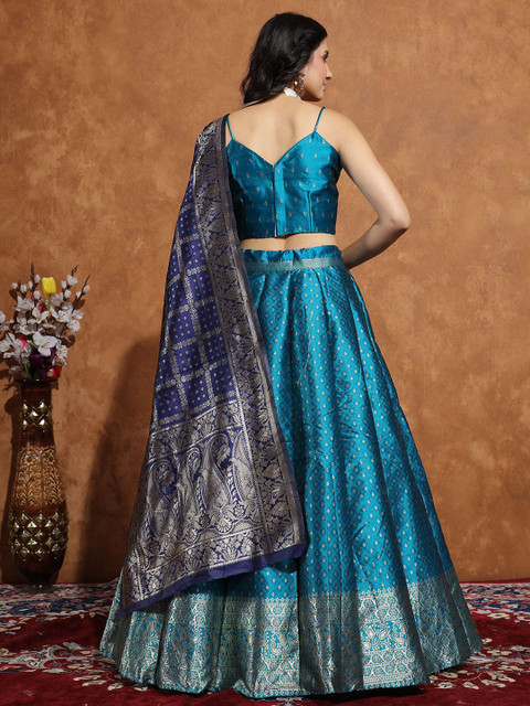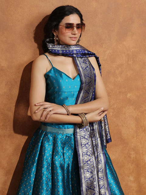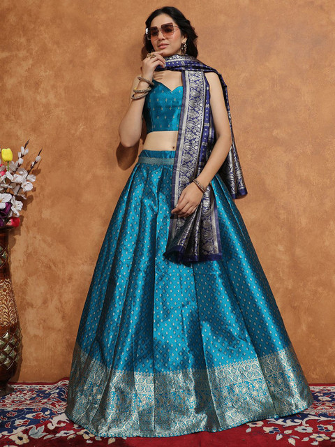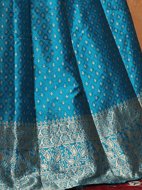 Turquoise blue, gold and blue woven design lehenga choli with dupatta, zari work