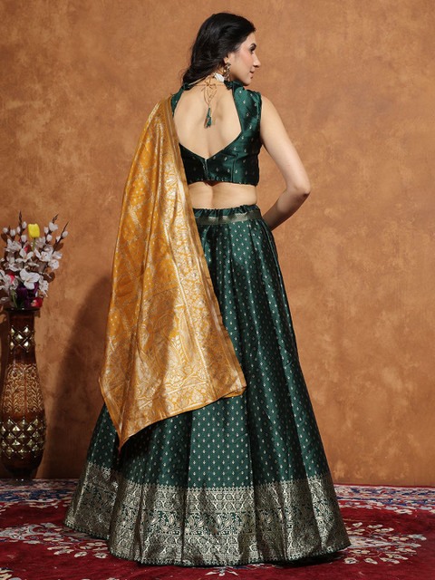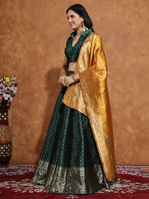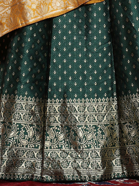 Green, mustard and gold woven design lehenga choli with dupatta, zari work