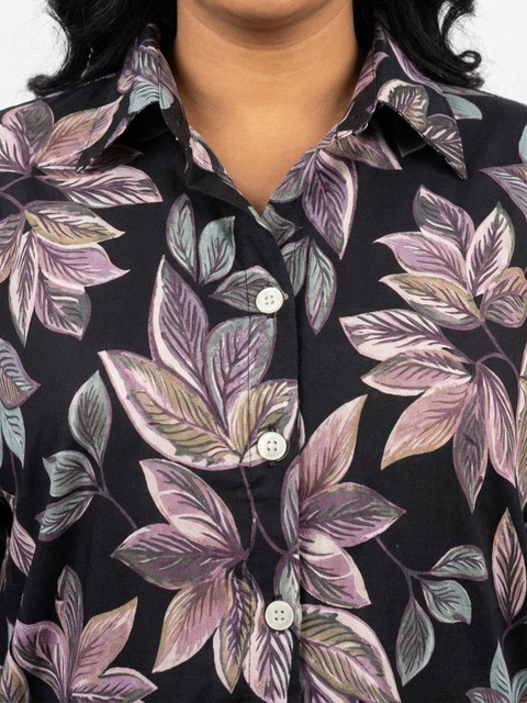 Black and Printed Shirt Shirt Collar, Three-quarter Sleeves