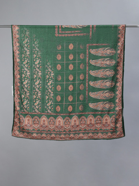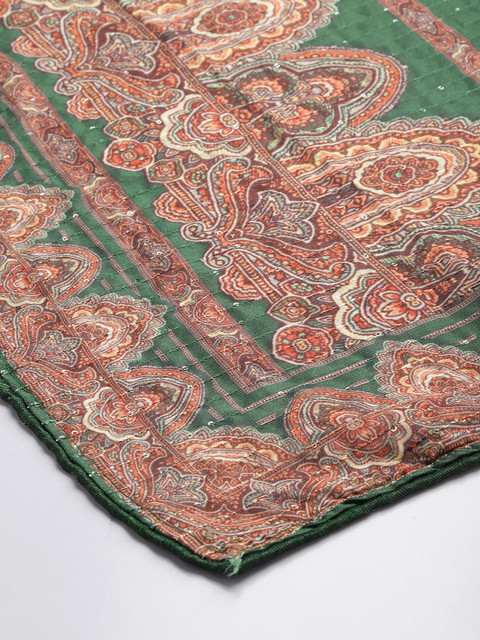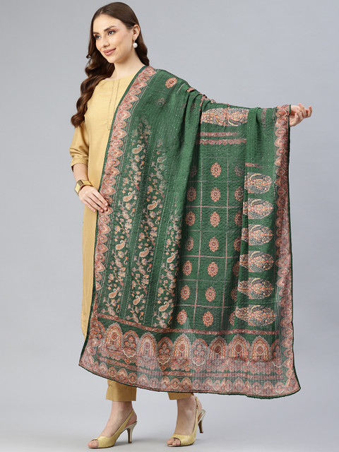 Green and brown ethnic motifs printed dupatta sequinned, printed border