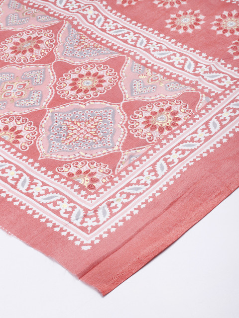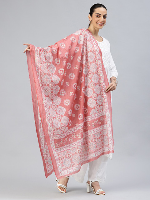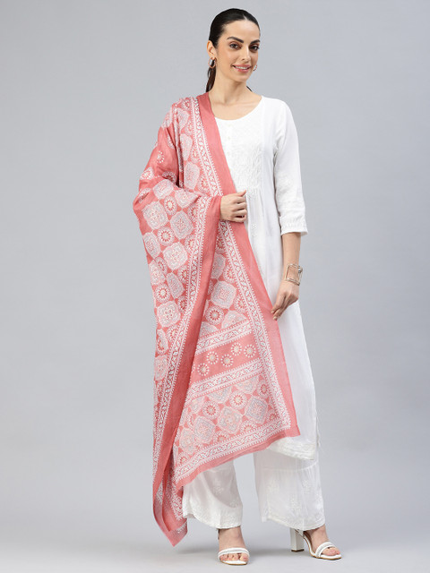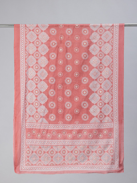 Peach-coloured and white solid printed dupatta, solid border