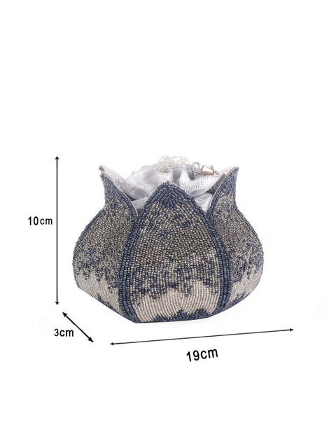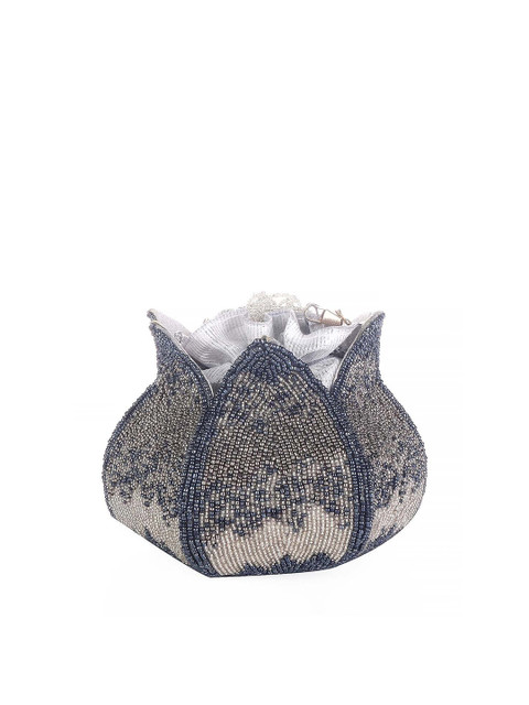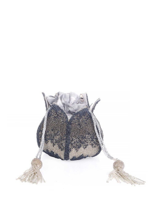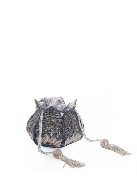 Grey and cream-coloured embellished potli clutches