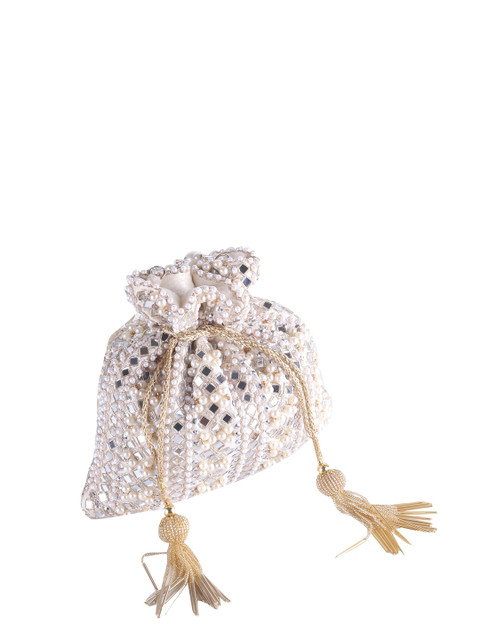 Off white embroidered potli clutches