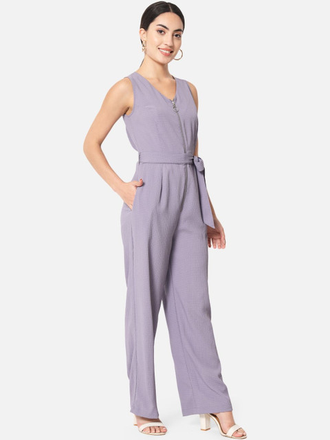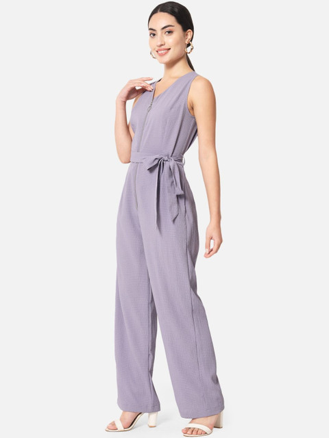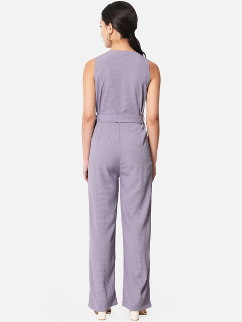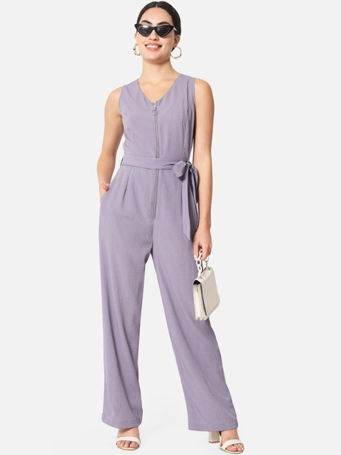 Purple solid basic jumpsuit ,has a v-neck, sleeveless, 2 pockets