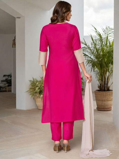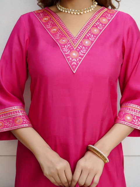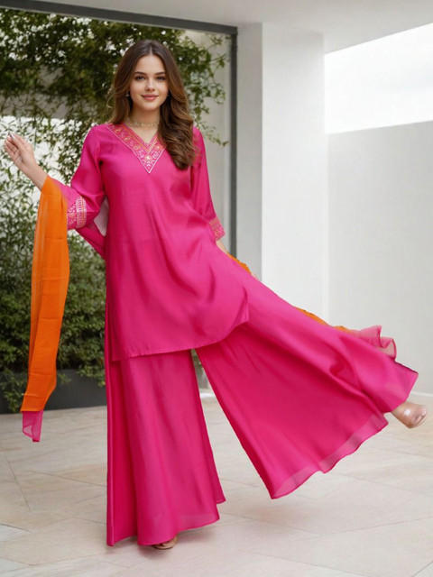 Pink embroidered Kurta with Palazzos and dupatta
