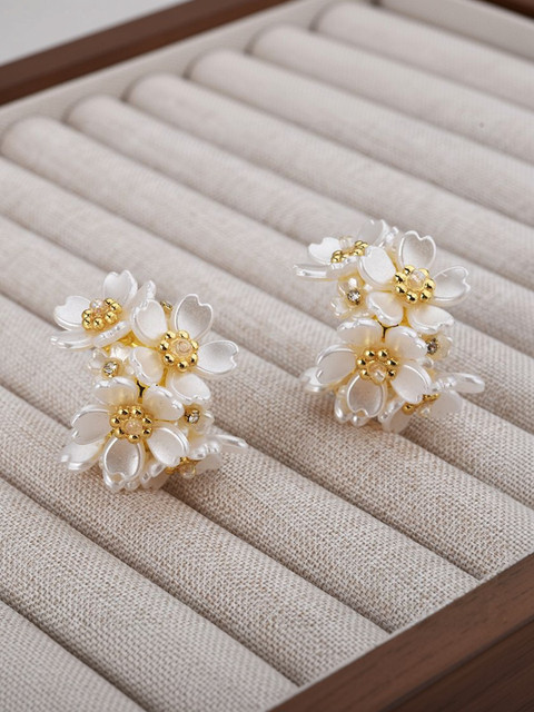 Wipe your jewellery with a soft cloth after every use and always store it in a flat box to prevent scratches. Keep sprays, perfumes, and water away from your earrings. Do not soak them in water. Clean gently with a soft brush dipped in mild jewellery cleaning solution. Made from anti-tarnish Alloy Steel with moti gold plating and Korean pearl finish