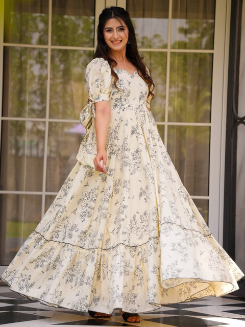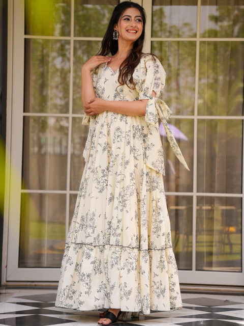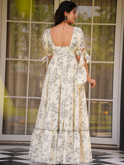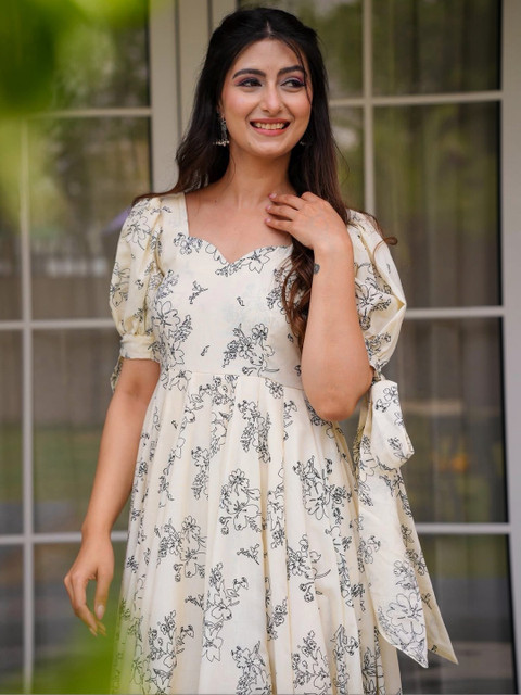 - Cream-coloured and cream-coloured floral print a-line dress
