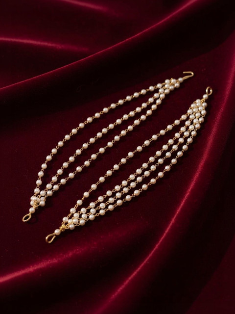 The Gold-Plated Pearls Studded Classic Layered Ear Chain Ear Cuff is a chic and elegant accessory that adds a touch of sophistication to any outfit. Featuring a luxurious gold-plated finish, this ear cuff combines classic style with a contemporary design. Its layered structure creates a visually striking effect, while the lustrous pearls studded along the layers provide an added sense of refinement. The ear chain, connecting the cuff to your ear, adds a delicate yet bold finishing touch, allowing the piece to flow gracefully with your movements. Perfect for both everyday wear and special occasions, this ear cuff is a timeless and versatile addition to any jewelry collection.