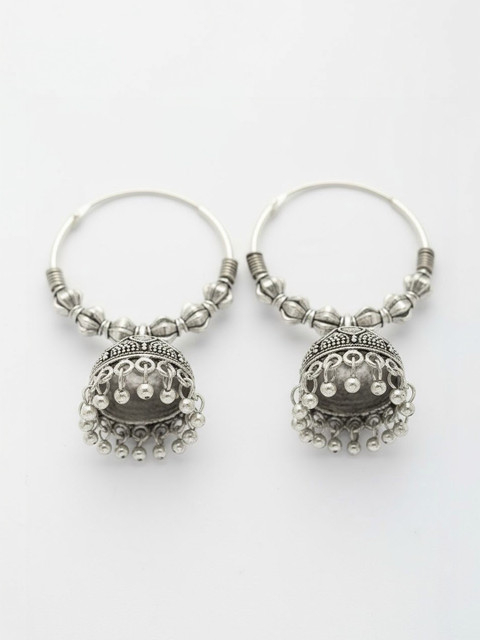 Silver-toned circular jhumkas, silver-plated