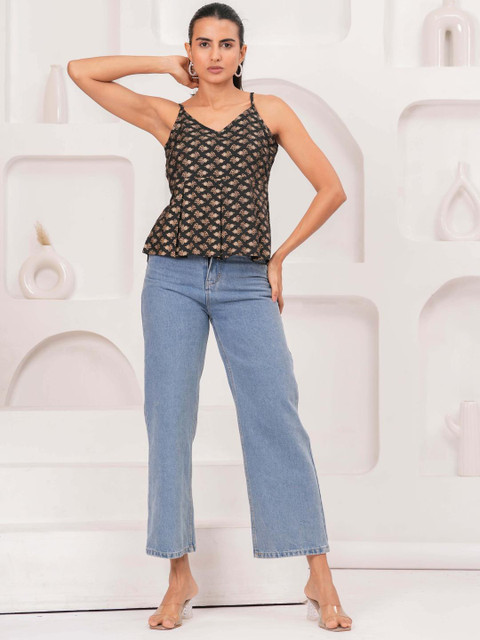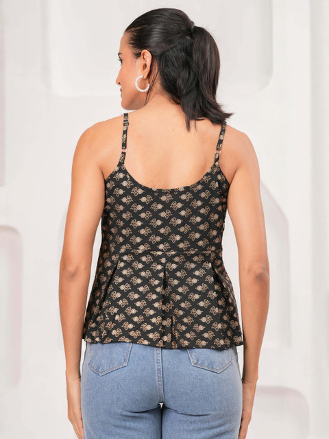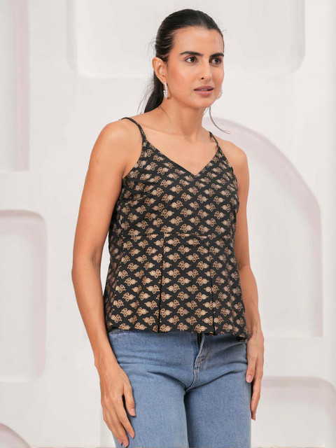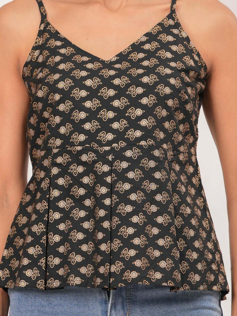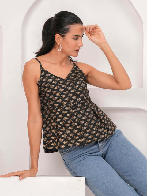 Black Printed Sleeveless Top for Women