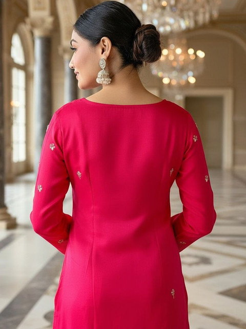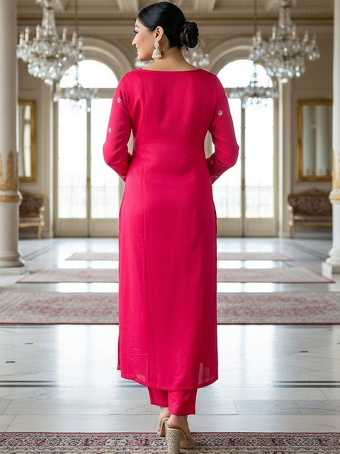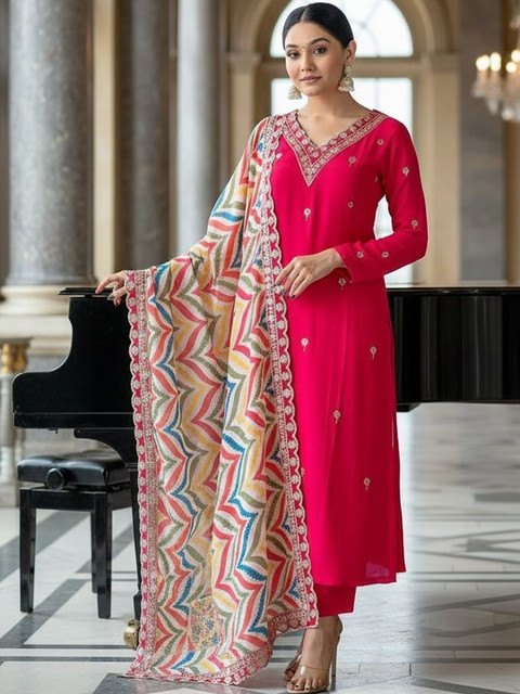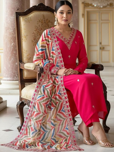 Pink embroidered Kurta with Trousers with dupatta