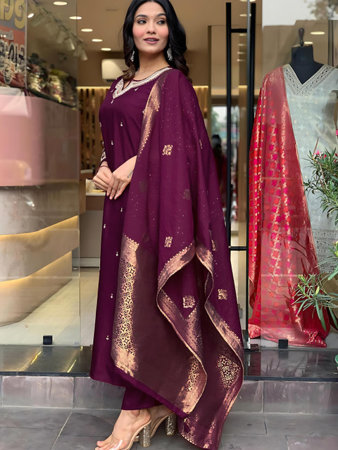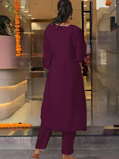 Purple embroidered Kurta with Trousers with dupatta