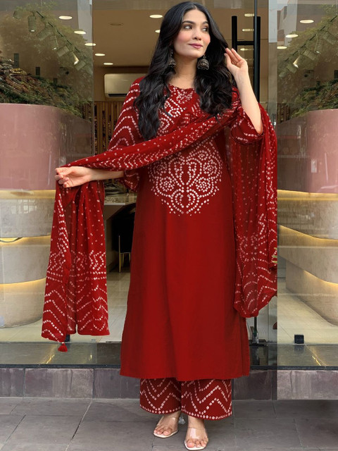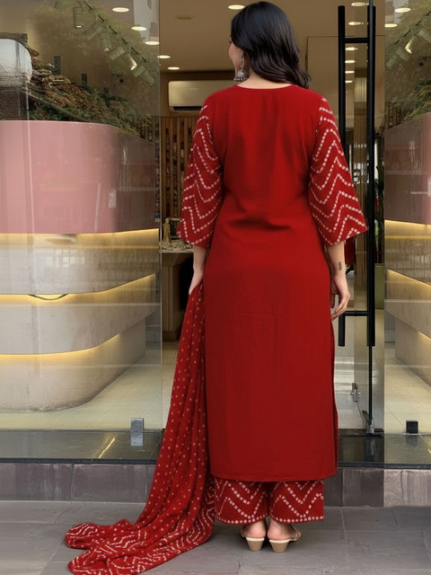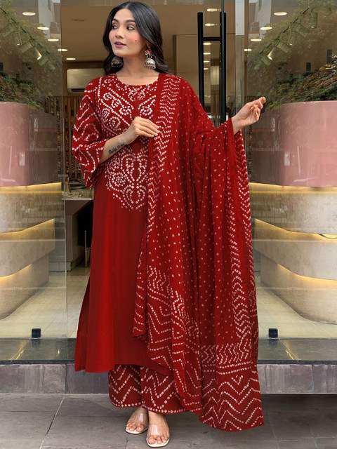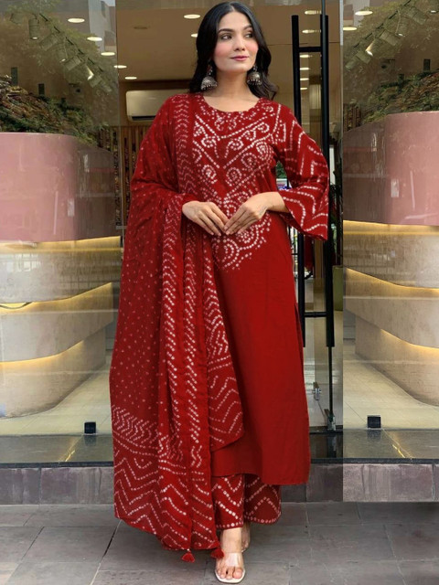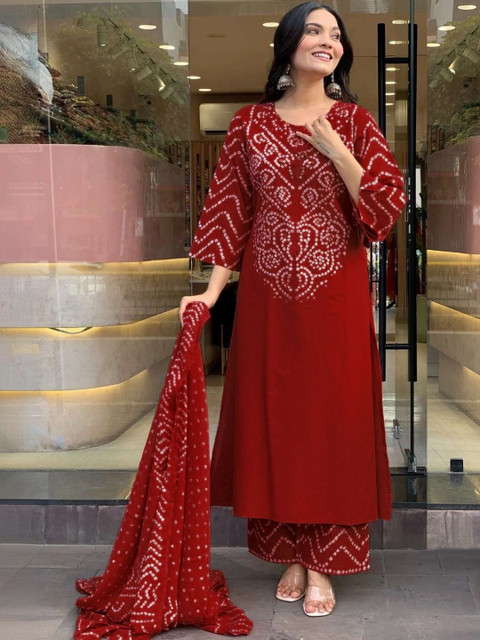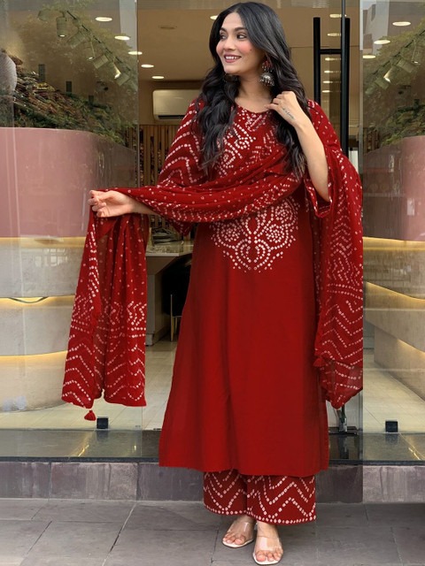 Red printed Kurta with Palazzos with dupatta
