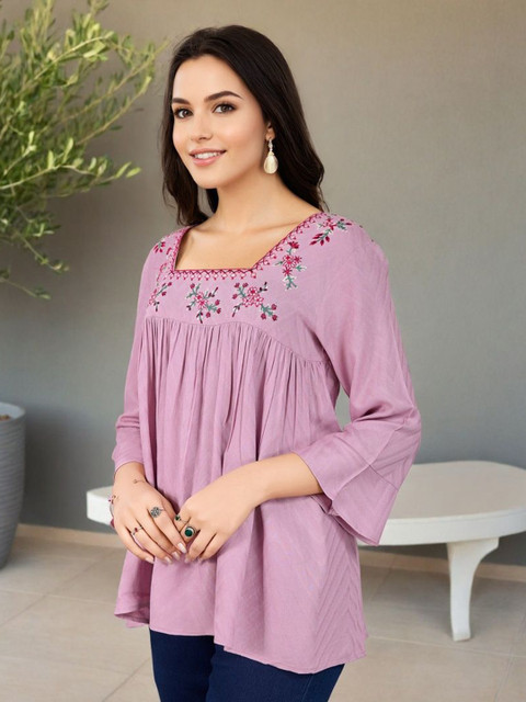 Very elegant and comfortable tunic. The embroidery is neat and gives a classy look. Fabric feels soft on the skin and is perfect for daily wear.