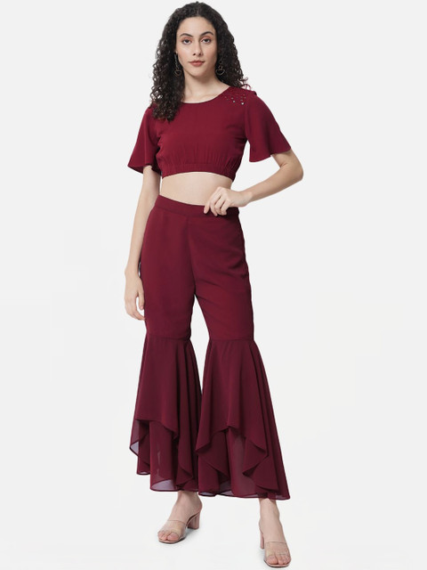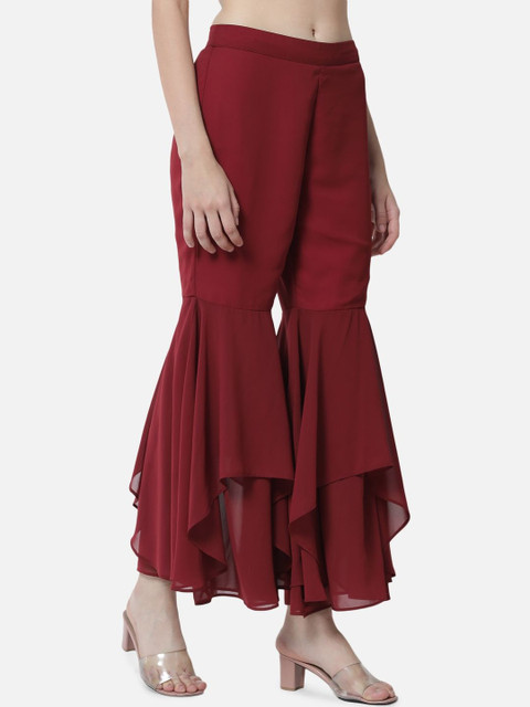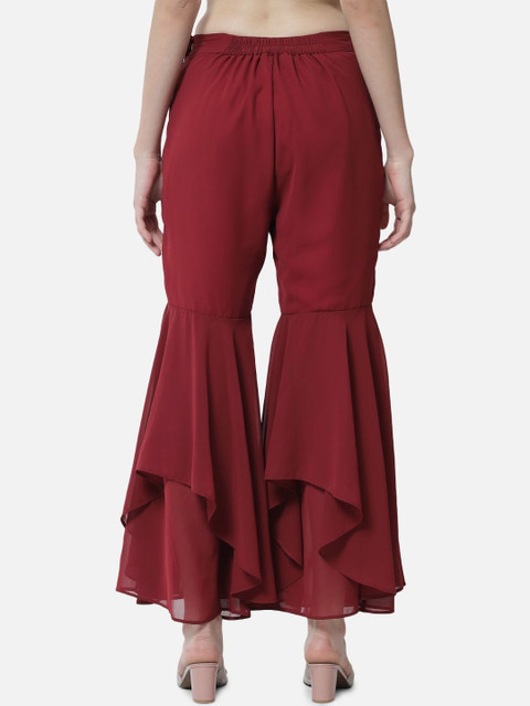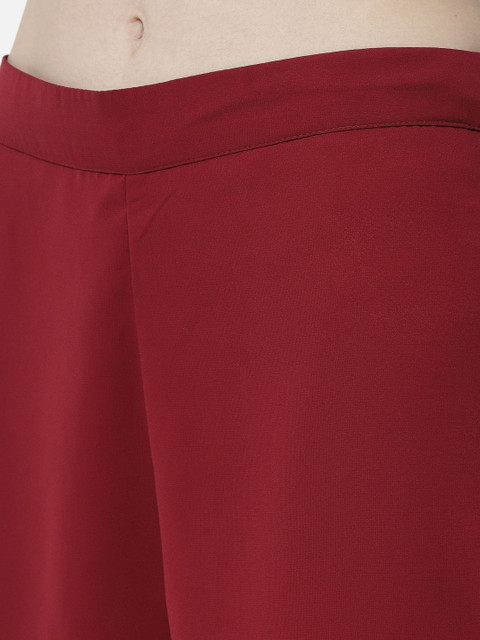 • Maroon and maroon woven palazzos