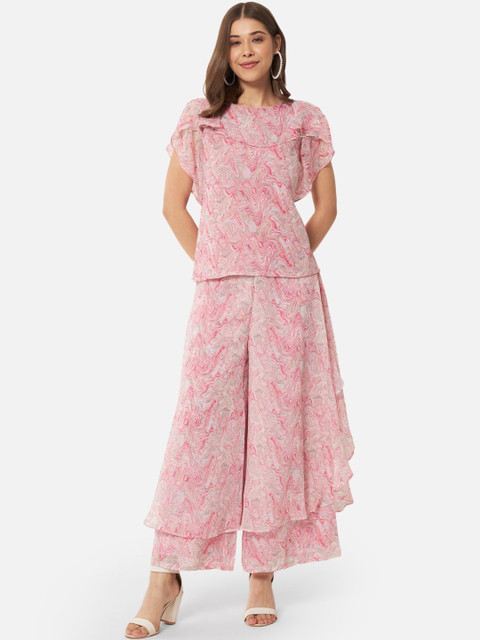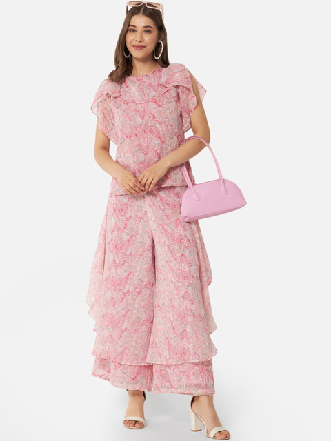 - Pink and pink woven palazzos