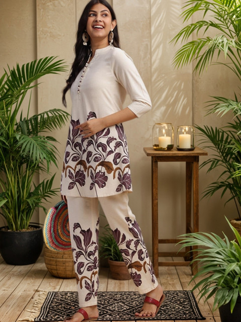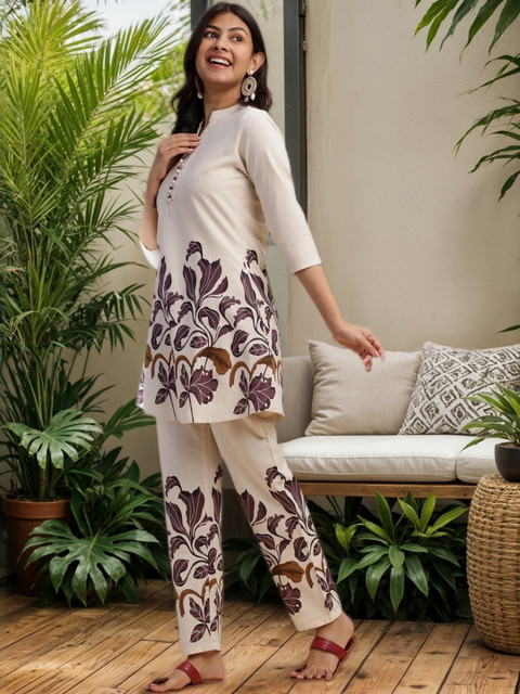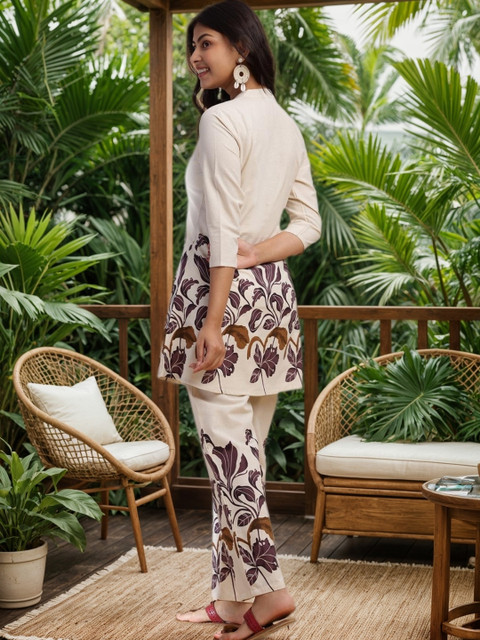 Purple & Cream printed kurta with Trouser