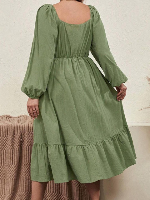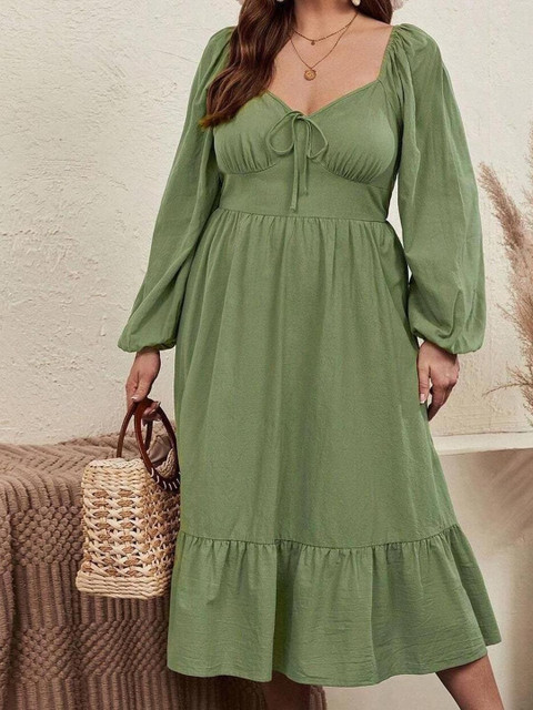 - Olive Green and Olive Green Solid A-Line dresses