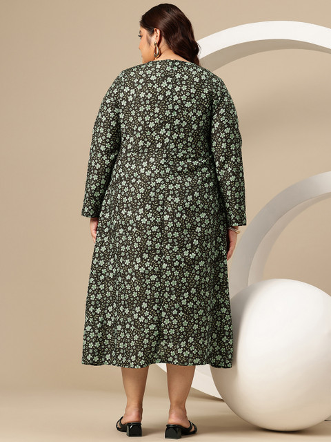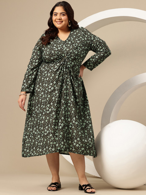 Sztori Plus Size Floral Print A-Line Midi Dress
