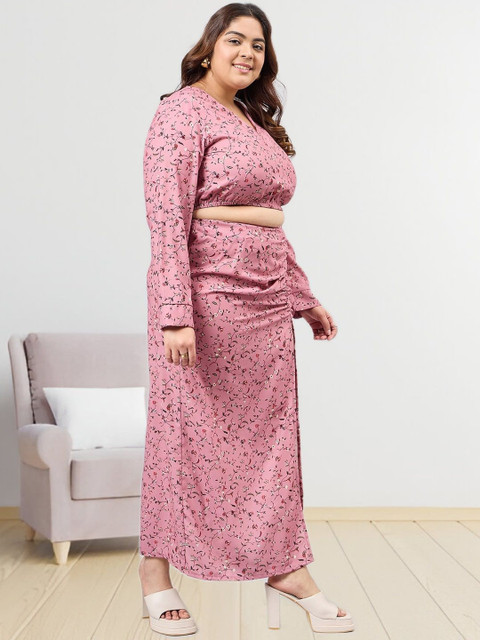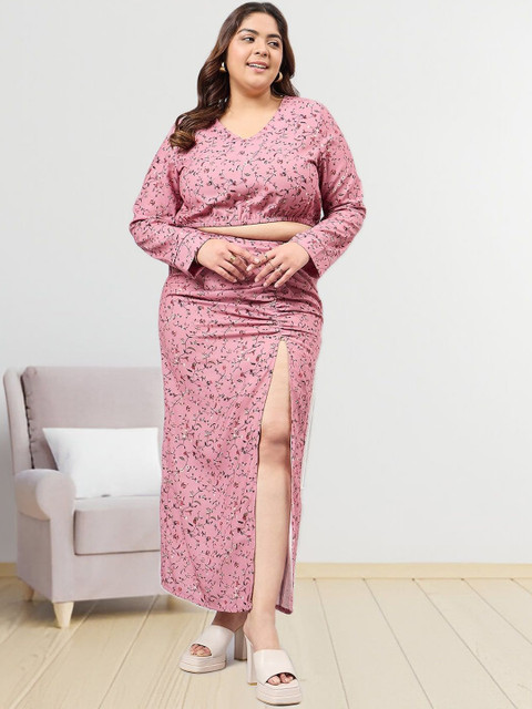 Pink and green printed mid-rise skirt, has slip-on closure and straight hem