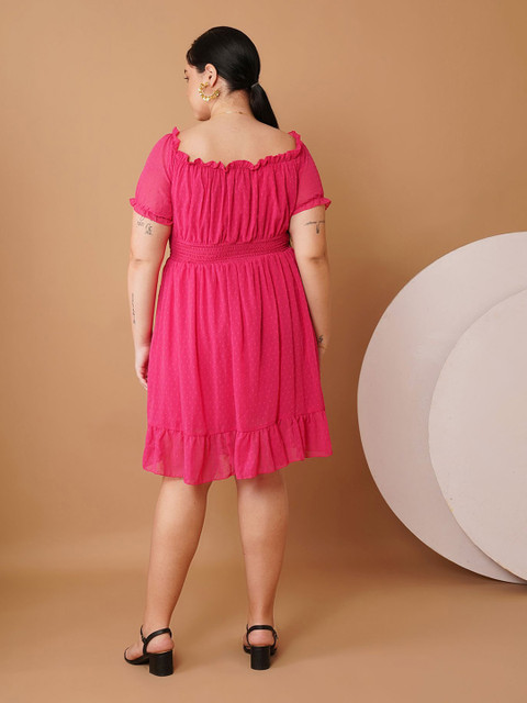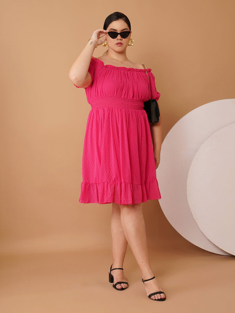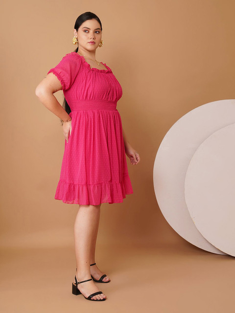 • Magenta self design fit & flare dress