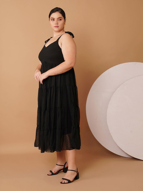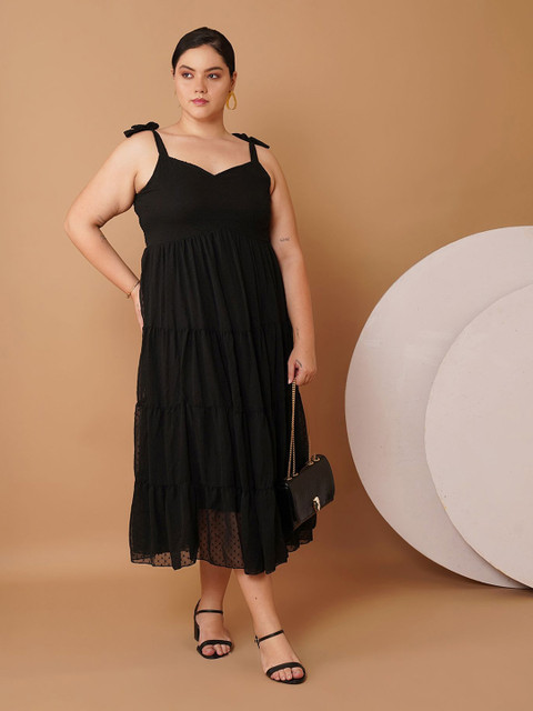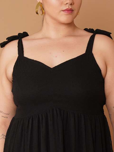 • Black self design fit & flare dress