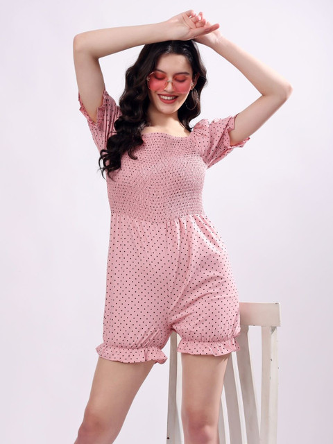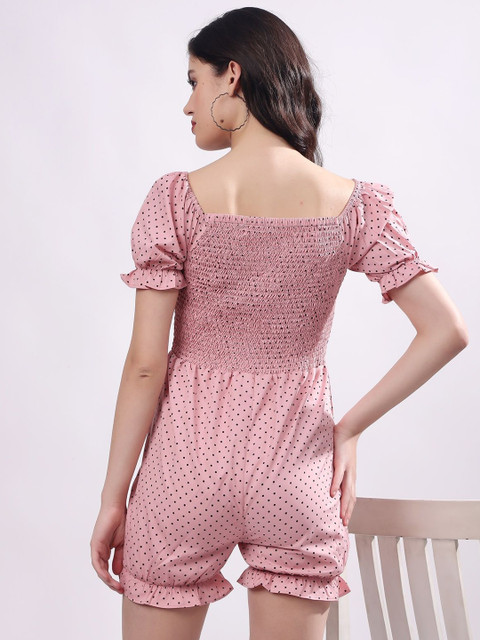 T TRYON ULTIMATE Women Polka Dot Printed Playsuit with Smoked Details