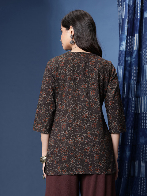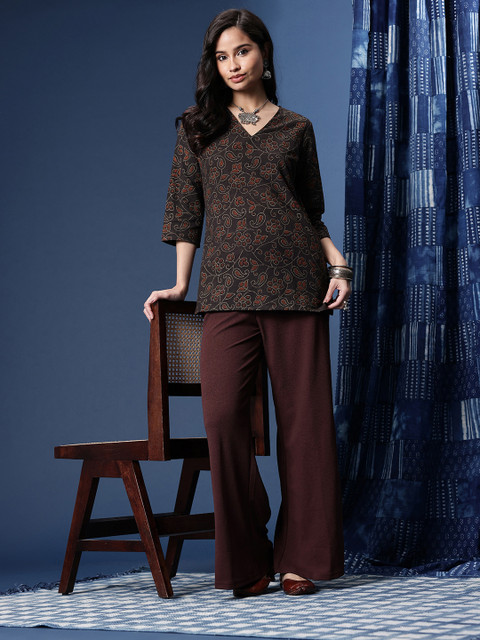 The print on the garment might be uneven- owing to the handcrafted nature of the product, adding essence to the garment.